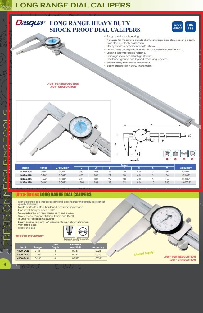 DASQUA 0-18 INCH HEAVY DUTY DIAL CALIPER (SKU: 1432-4105)