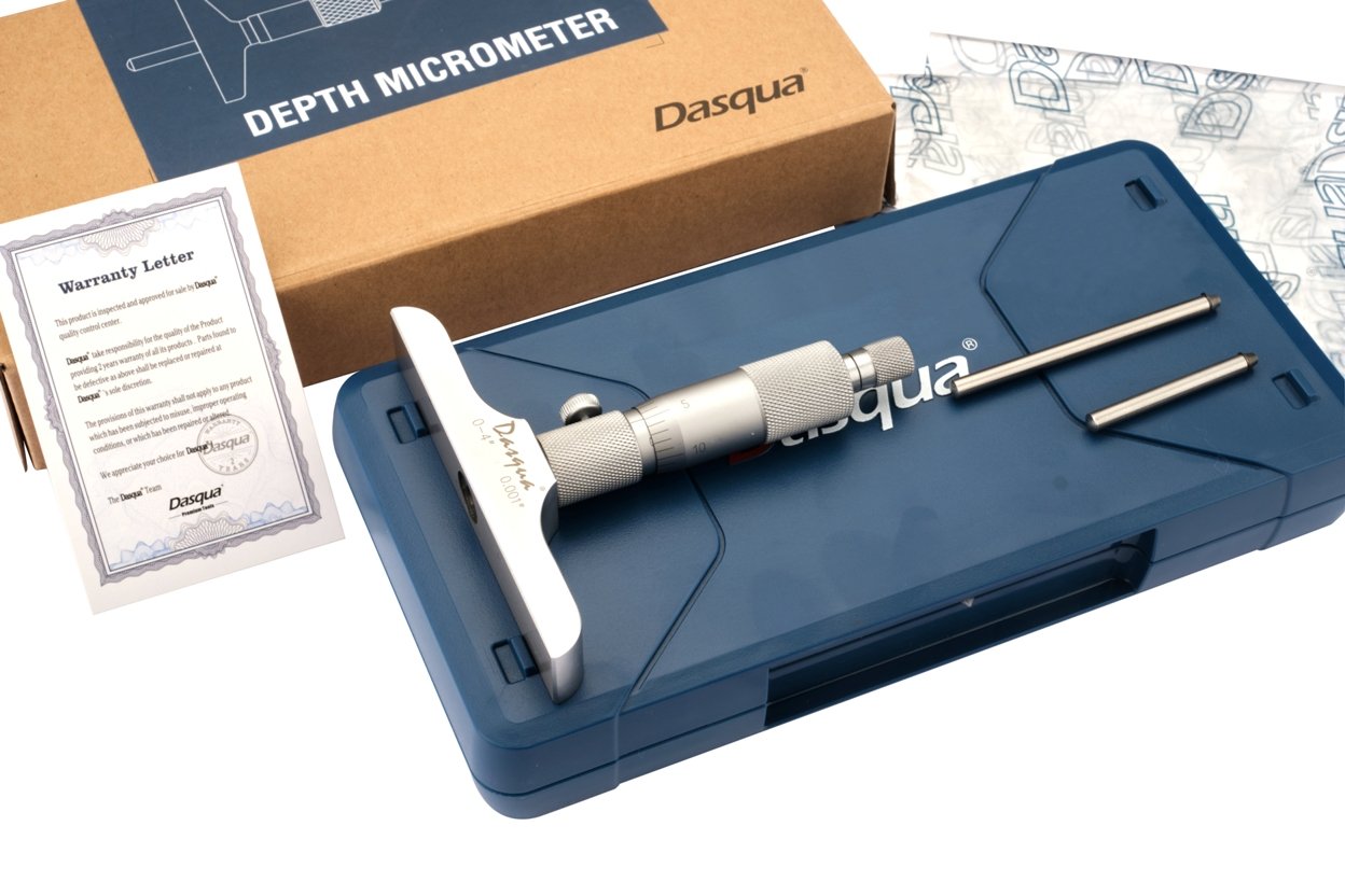 DASQUA 0-2″ DEPTH MICROMETER (4612-5110). Key features: Dasqua 0-2″ Depth Micrometer; Accuracy is plus/minus 0.00016″..