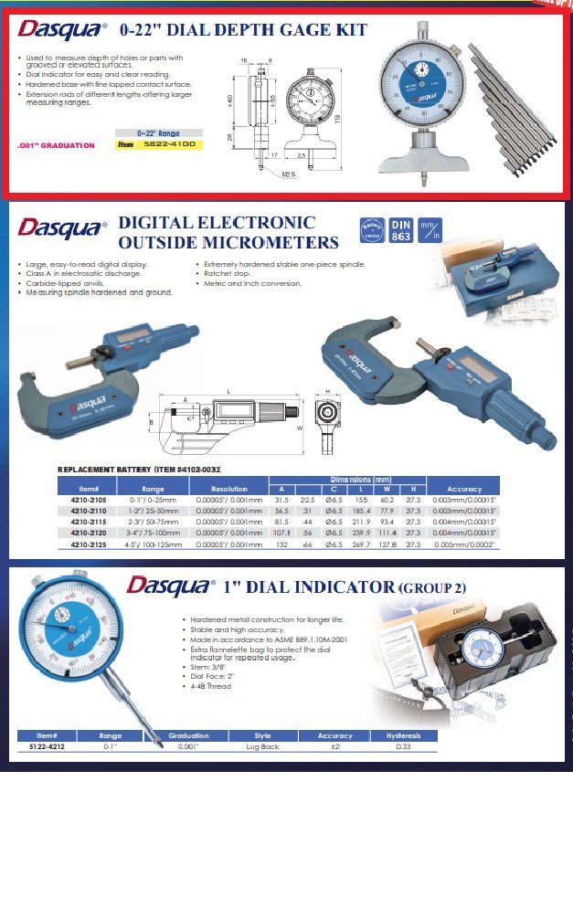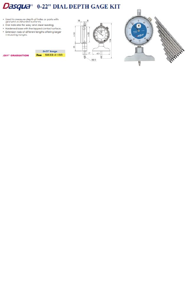 - Dasqua 0-22″ Dial Depth Gage Set With 2-1/2″ Base