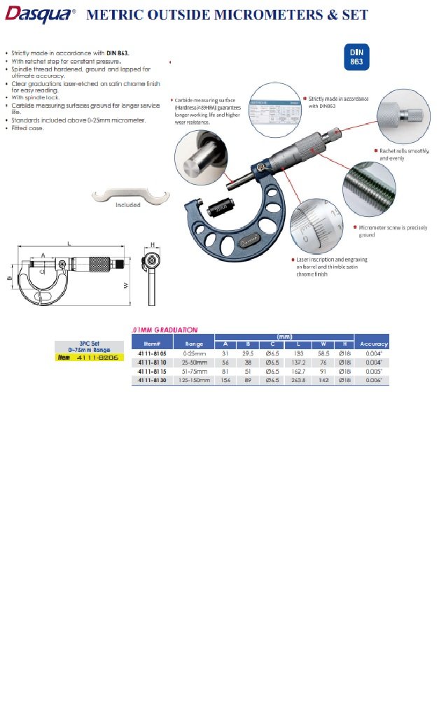 DASQUA 0-25MM OUTSIDE MICROMETER (4111-8105) (SKU: 4111-8105)
