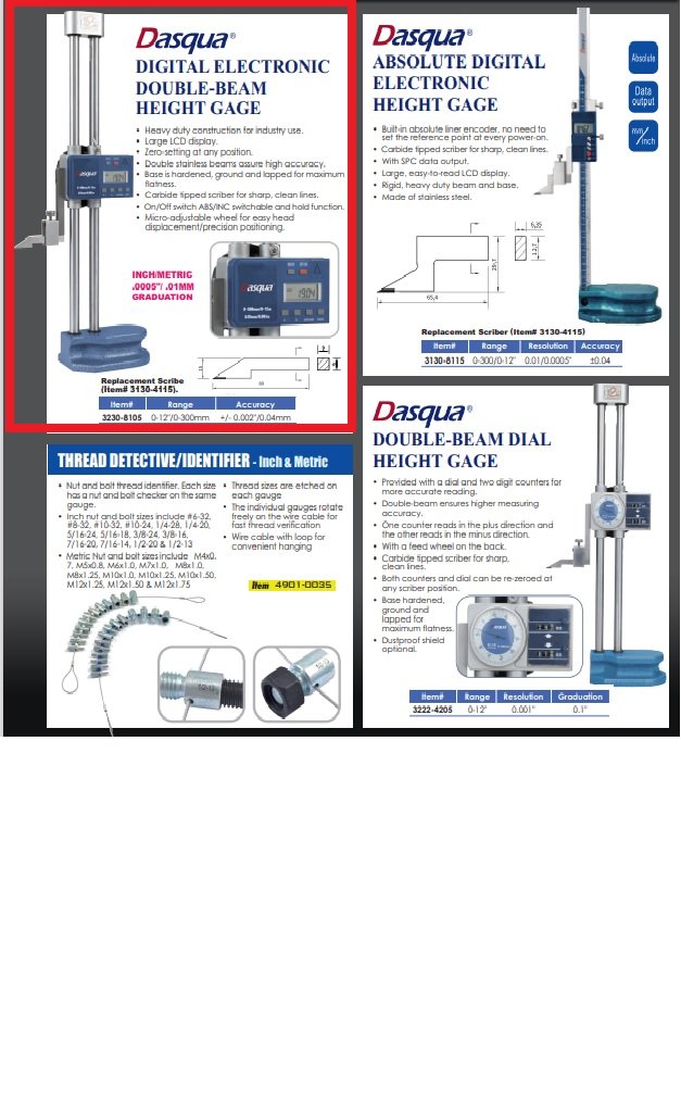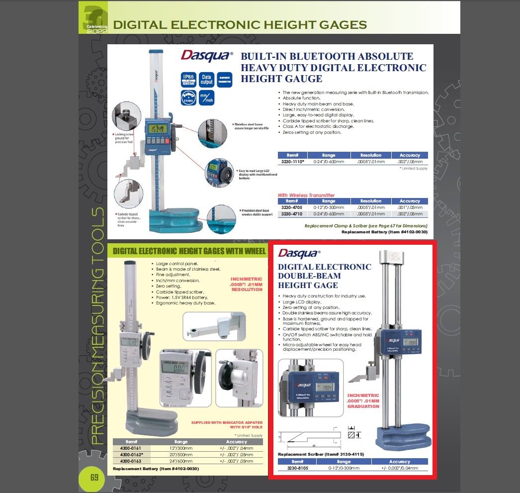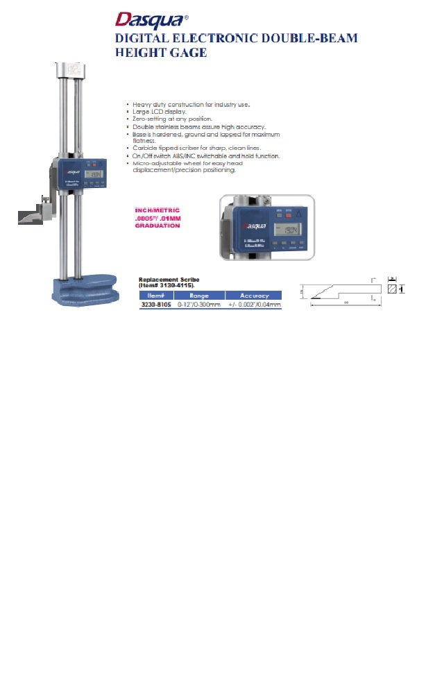 - Dasqua 0-300mm/0-12″ Double Beam Digital Height Gage