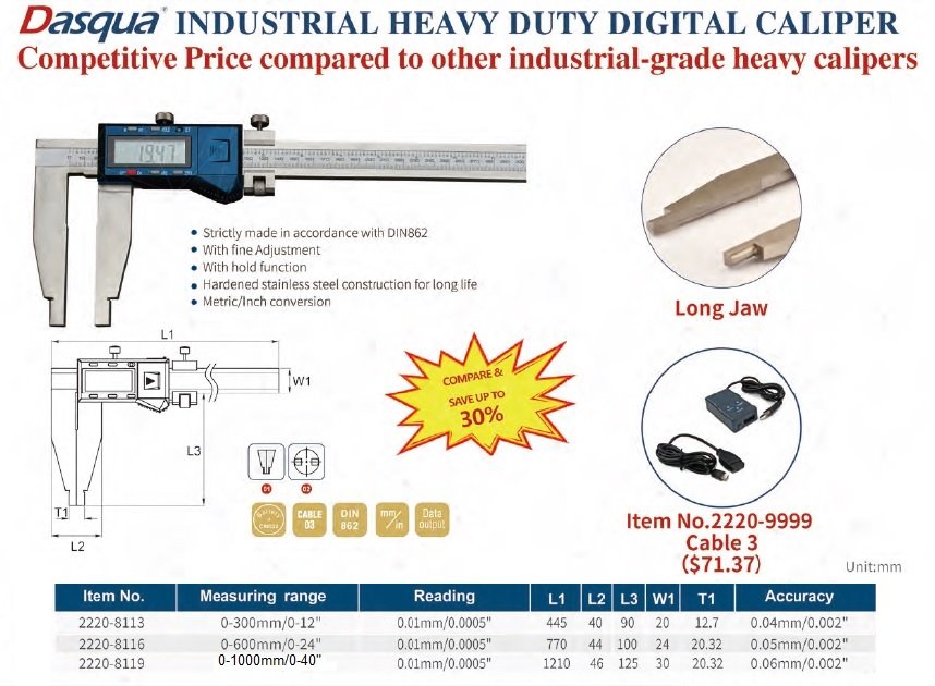 DASQUA 0-300MM/0-12″ JAW LENGTH 90MM HEAVY DUTY DIGITAL CALIPER (2220-8113) (SKU: 2220-8113)