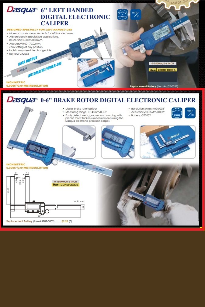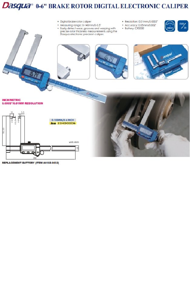 - Dasqua 0-6″ Brake Rotor Electronic Caliper