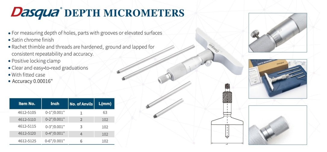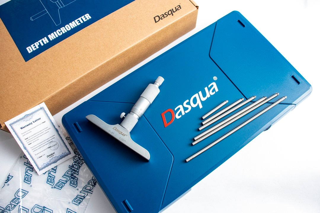 - Dasqua depth micrometer measures depth of holes or parts with grooved or elevated surfaces