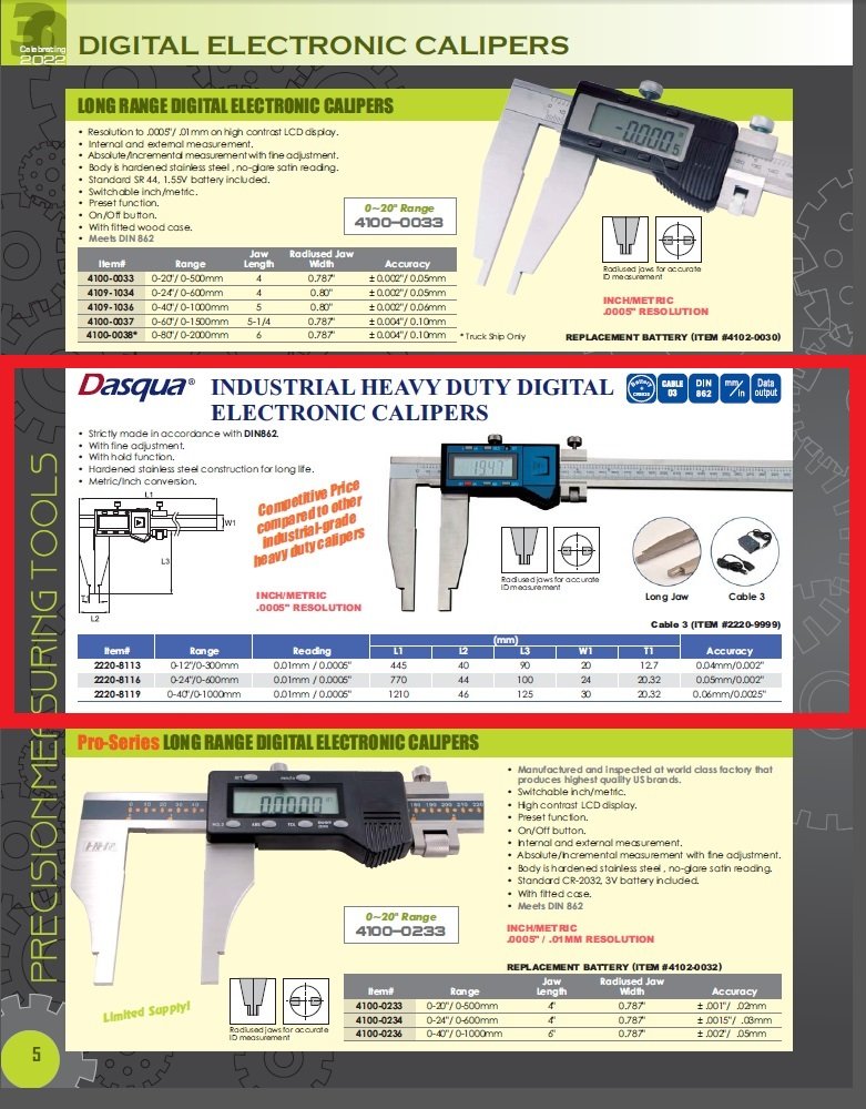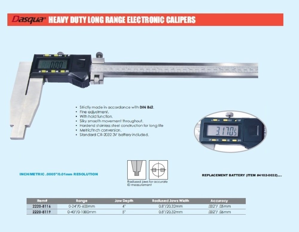 - Dasqua 0-600mm/0-24″ 100mm Jaw Length Heavy Duty Digital Caliper