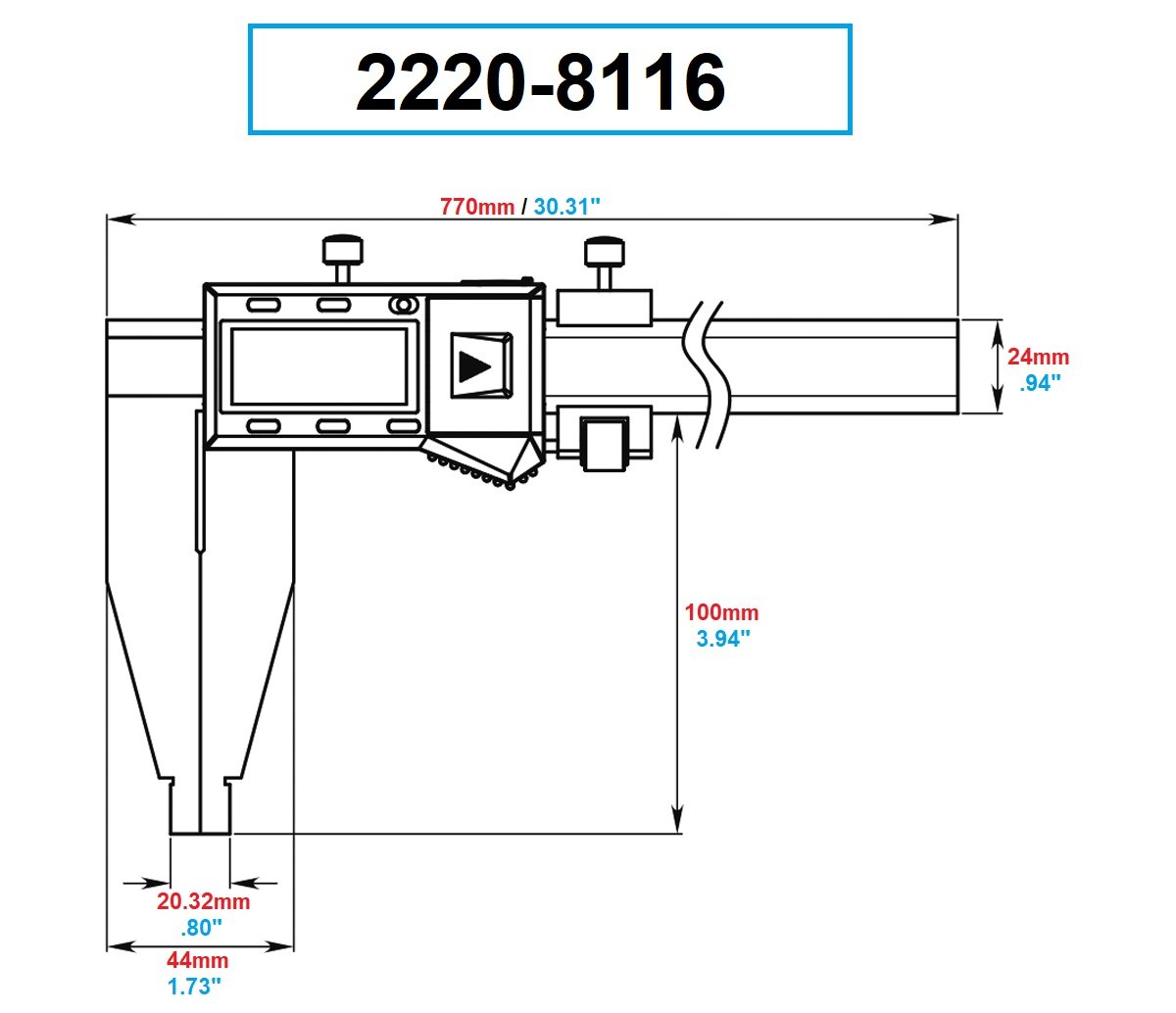 DASQUA 0-600MM/0-24″ JAW LENGTH 100MM HEAVY DUTY DIGITAL CALIPER (2220-8116) (SKU: 2220-8116)
