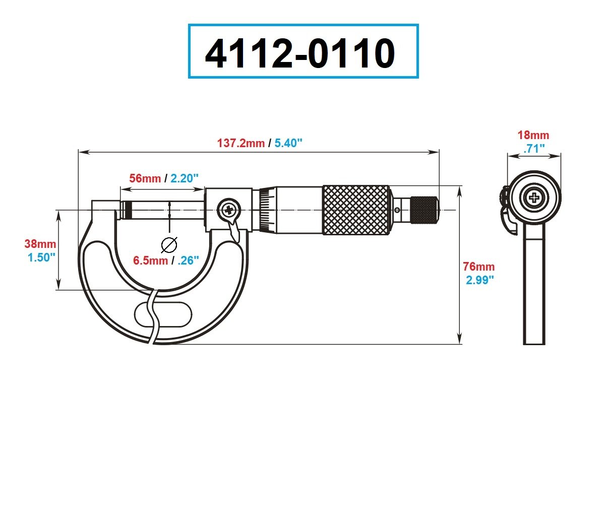 DASQUA 1-2″ .0001″ OUTSIDE MICROMETER (4112-0110) (SKU: 4112-0110)
