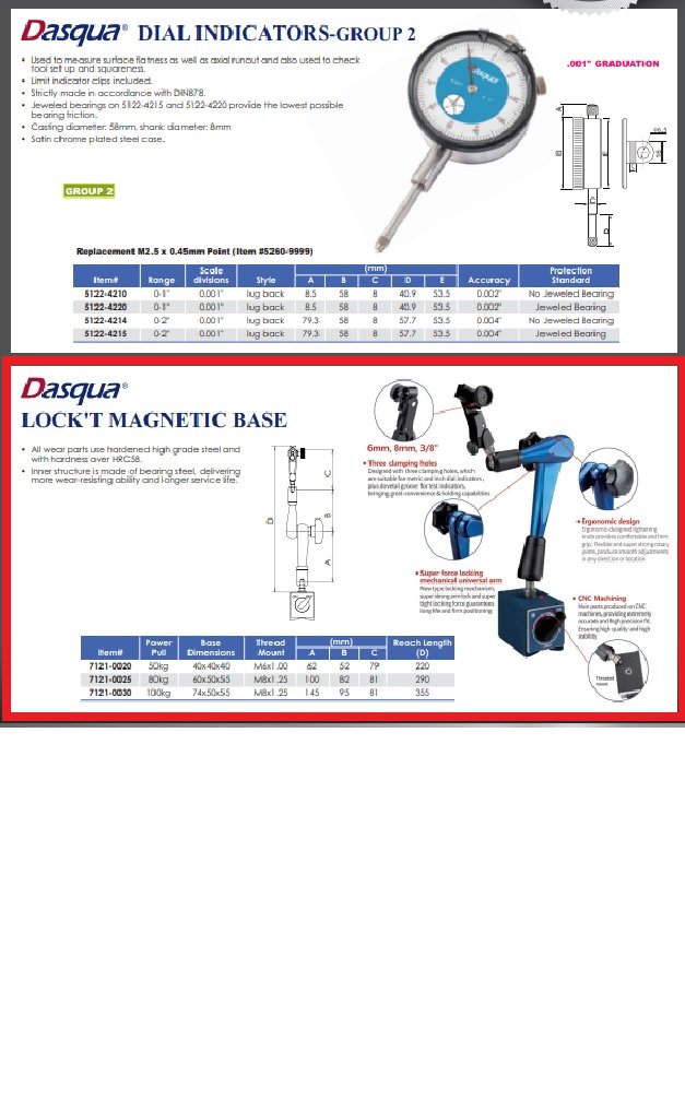 - Three clamping holes makes this base suitable metric and inch dial indicators