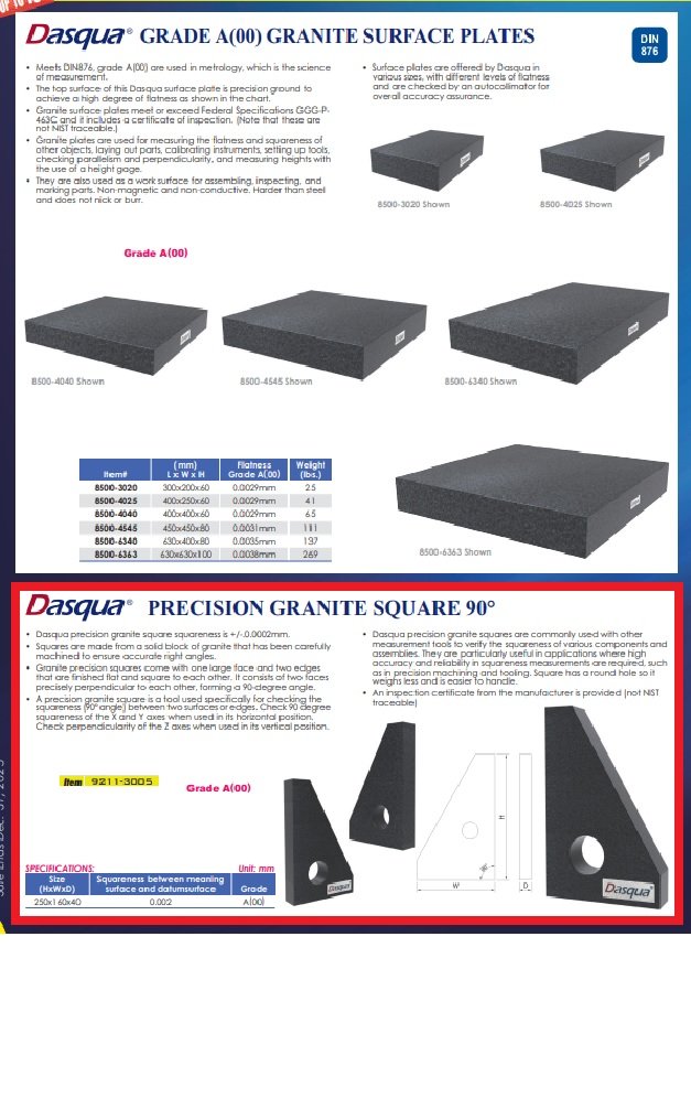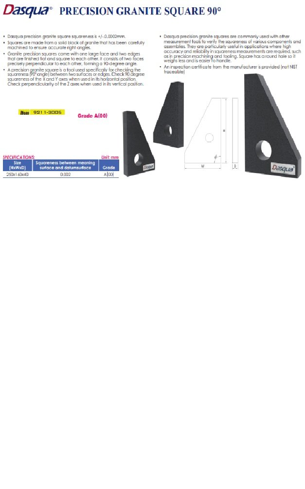 - Dasqua precision granite square squareness is +/-.0.0002mm.