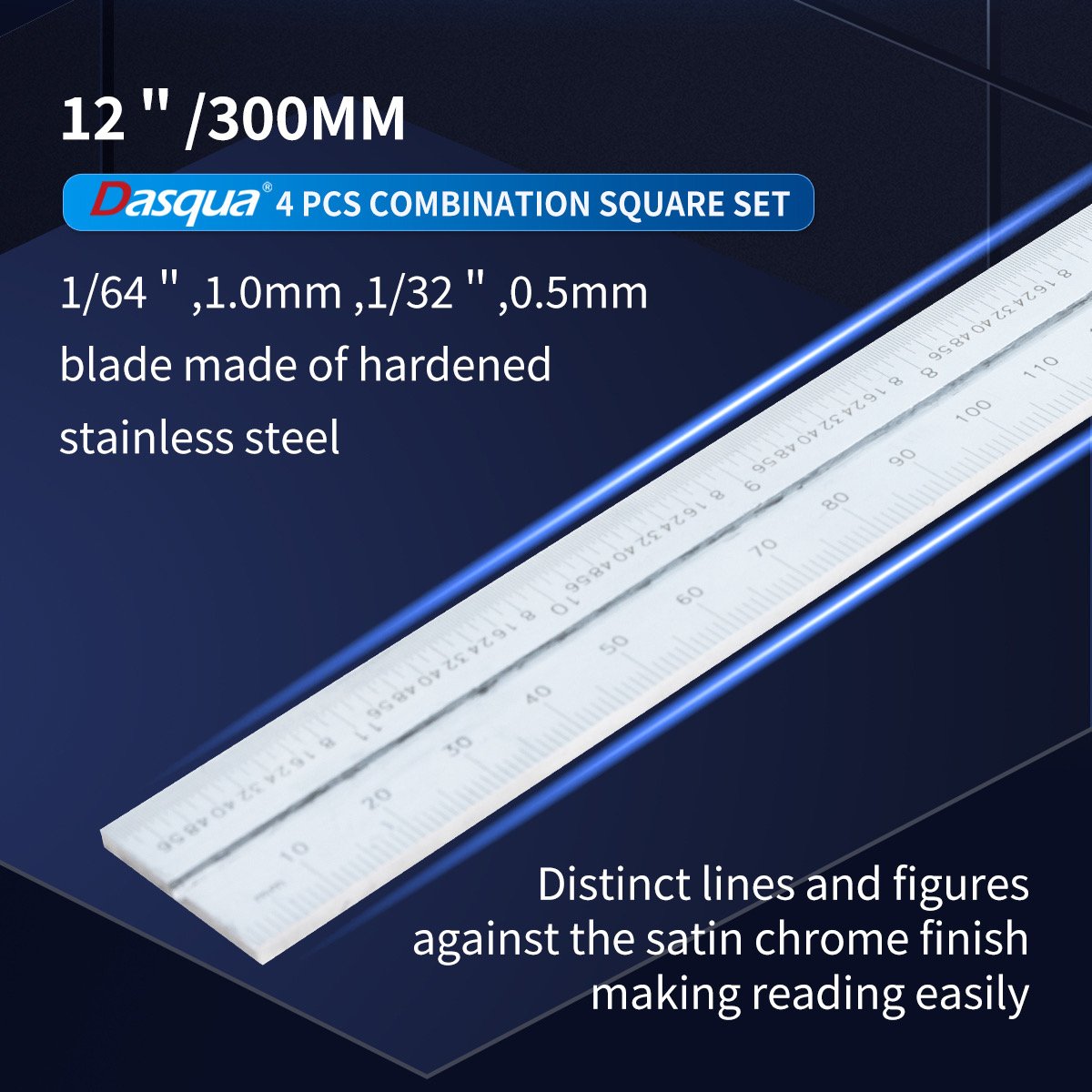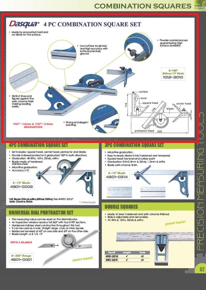 DASQUA 300MM/12 INCH 0-180 DEGREES 4 PIECE COMBINATION SQUARE SET (SKU: 1012-2010)