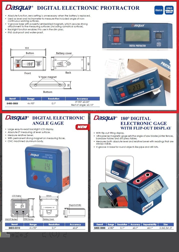 DASQUA 4 X 90 DEGREE DIGITAL LEVEL-PROTRACTOR-ANGLE FINDER (8400-0005)