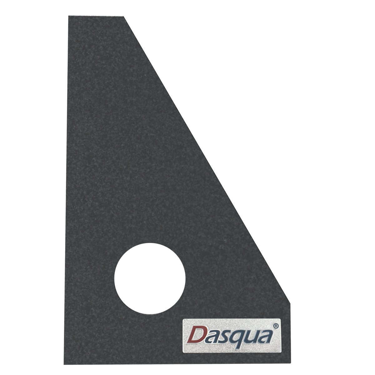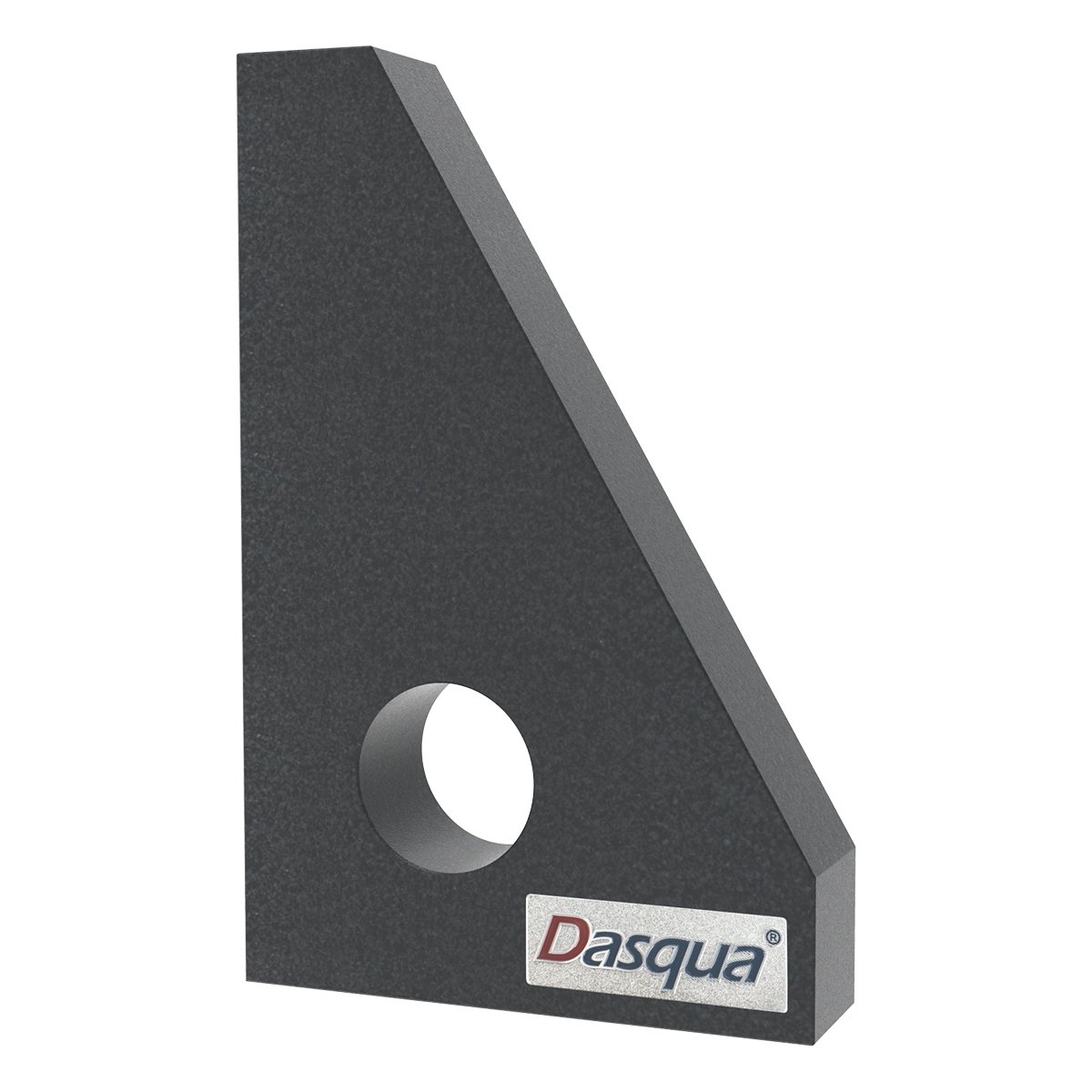 Dasqua 400 X 250 X 50mm Precision Granite Square Grade 00 Dasqua precision granite square squareness is +/-.0.0002mm. Squares are made from a solid block of granite that has been carefully machined to ensure accurate right angles. Granite precision squares come with one large face and two edges that are finished flat and square to each other. It consists of two faces precisely perpendicular to each other, forming a 90-degree angle. A precision granite square is a tool used specifically for checking the squareness (90° angle) between two surfaces or edges. Check the 90 degree squareness of the X and Y axes when used in its horizontal position. Check the perpendicularity of the Z axes when used in its vertical position. Dasqua precision granite squares are commonly used with other measurement tools to verify the squareness of various components and assemblies. They are particularly useful in applications where high accuracy and reliability in squareness measurements are required, such as in precision machining and tooling. This square has a round hole so it weighs less and is easier to handle. An inspection certificate from the manufacturer is provided (not NIST traceable). This square weighs 20 lbs.
