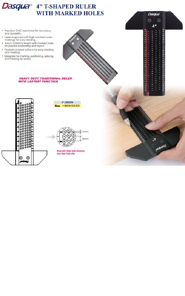 DASQUA 4IN T-SHAPED RULER WITH MARKED HOLES (SKU: 1804-5333)