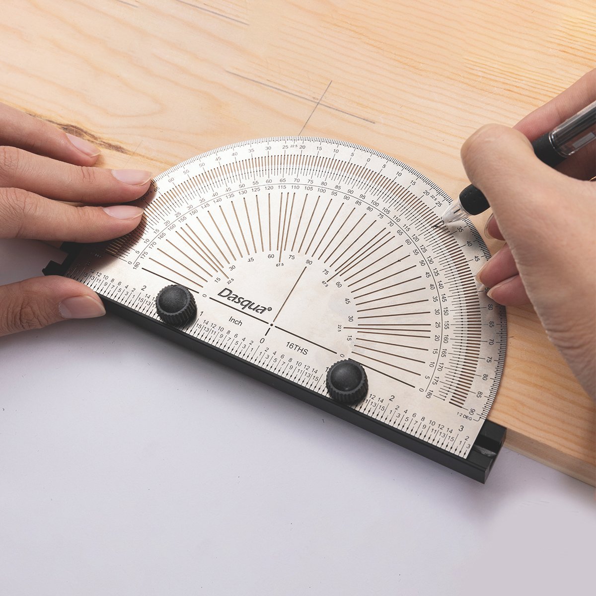 The Dasqua 6″ Precision Marking Protractor is a multi-functional powerhouse designed for machinists, CNC programmers, and precision fabricators. Unlike standard stamped protractors, this tool is CNC-processed from high-grade stainless steel. This manufacturing process ensures that every graduation is crisp and every edge is perfectly straight, providing the technical confidence required for high-tolerance shop work.