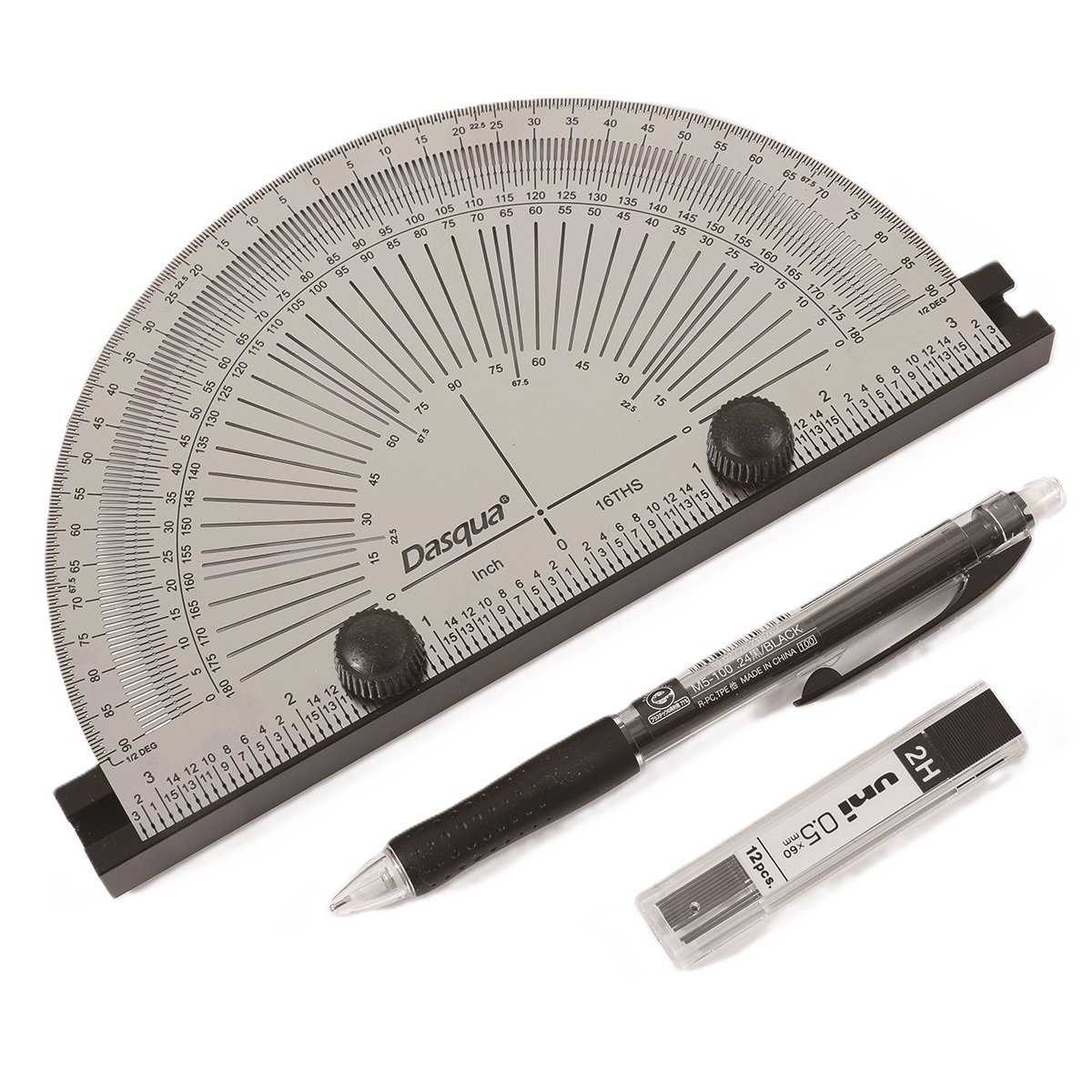 DASQUA 6IN PRECISION MARKING PROTRACTOR WITH PENCIL AND REFILL LEAD (SKU: 1804-5778)