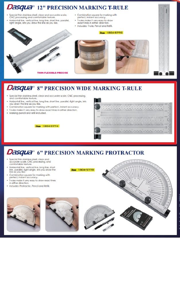 DASQUA 8IN PRECISION WIDE MARKING T-RULE WITH PENCIL & LEAD (SKU: 1804-5774)