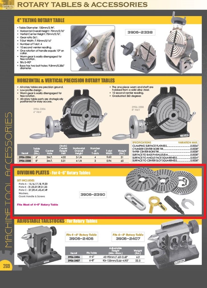 DIVIDING PLATES FOR 4- 6″ ROTARY TABLES (3906-2390) (SKU: 3906-2390)