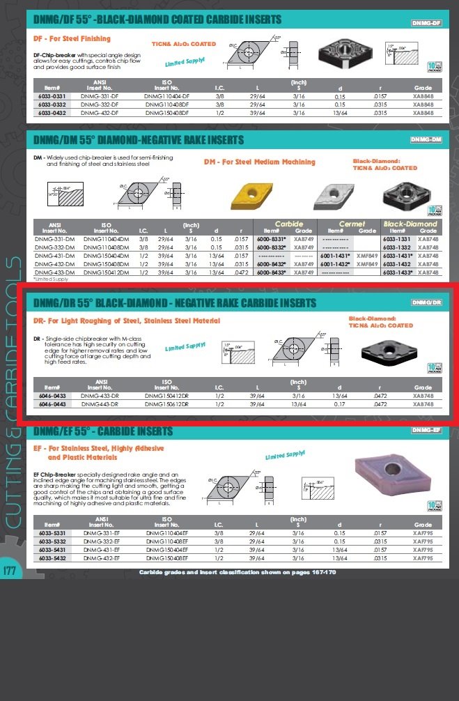 - DNMG-433-DR Negative Rake Coated Carbide Insert