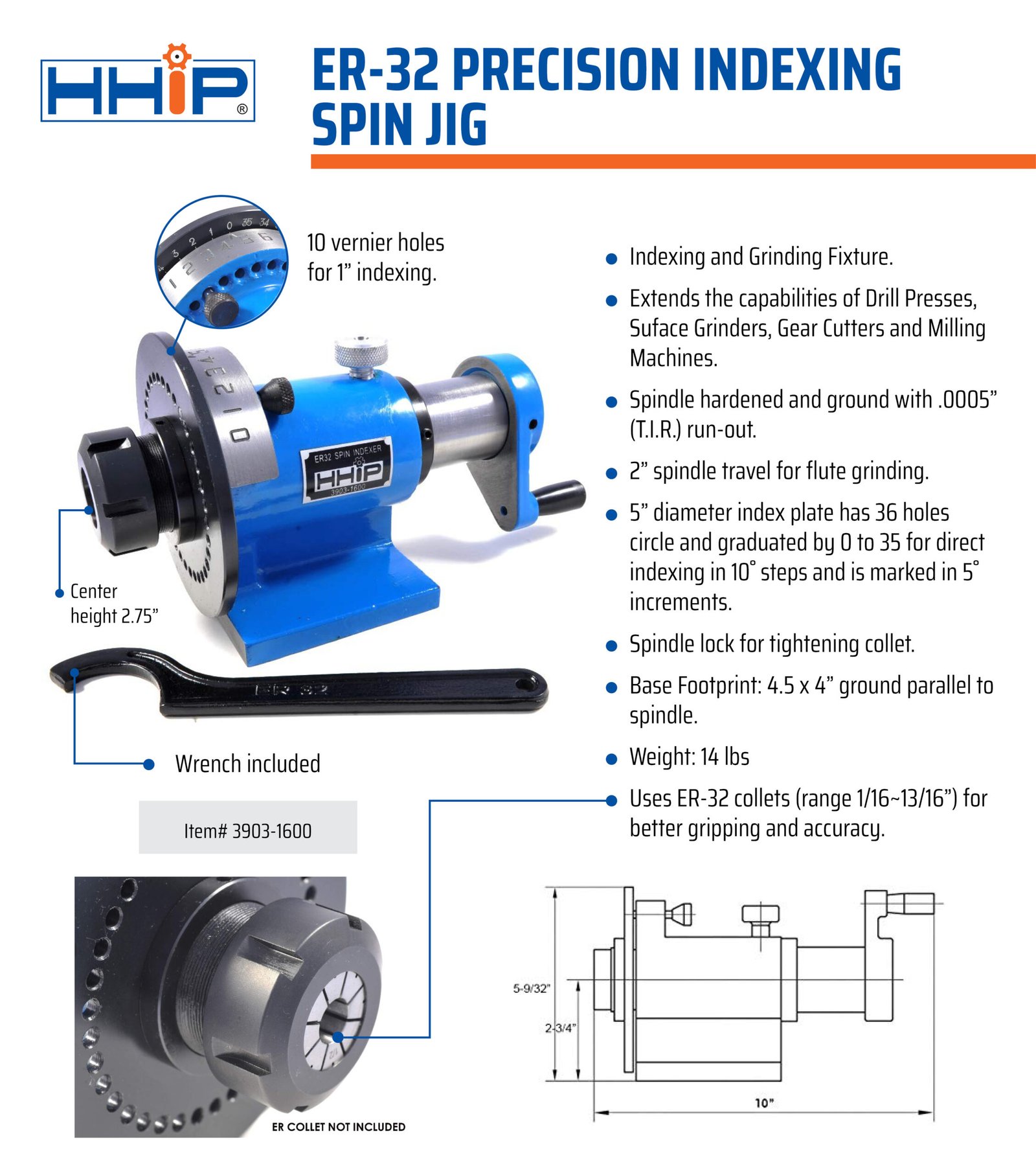 ER-32 INDEXING SPIN JIG WITH WRENCH (3903-1600) (SKU: 3903-1600)