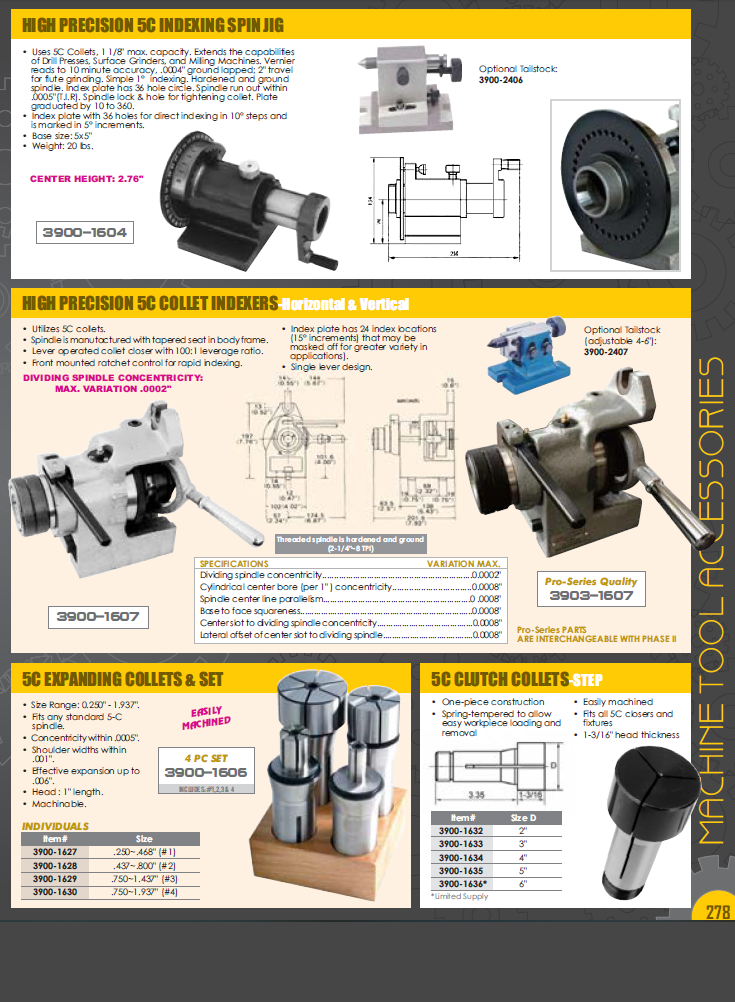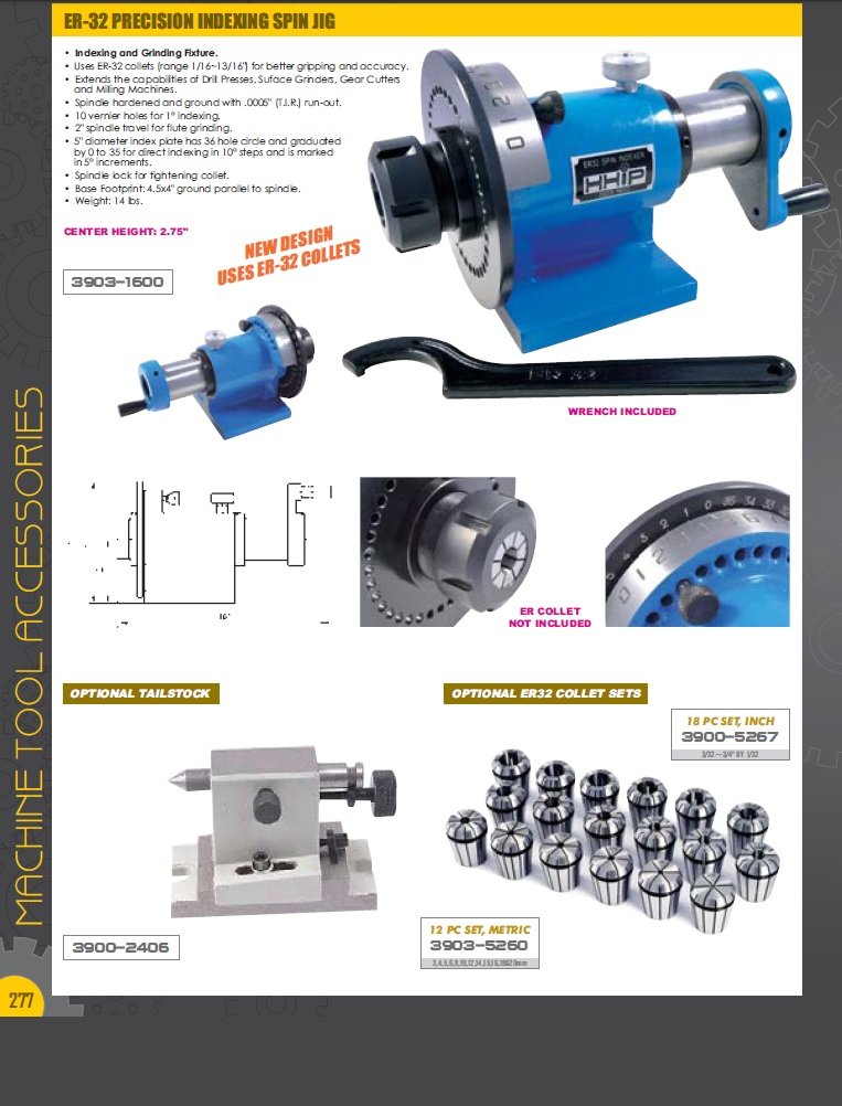 - This indexing & grinding fixture uses ER-32 collets (range 1/16