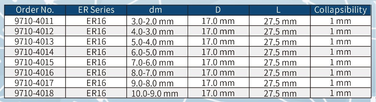 HARLINGEN ER-16 5MM SPRING COLLET (9710-4013). Key features: Harlingen ER-16 5mm Spring Collet; Runout is ≤0.008mm..