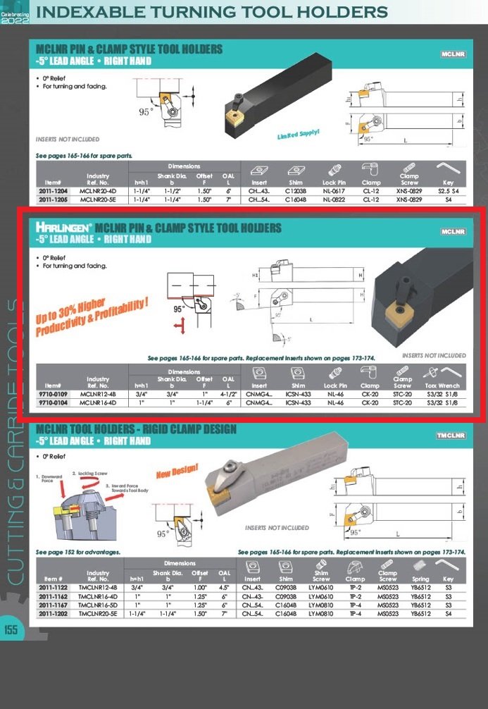 HARLINGEN MCLNR124B INDEXIBLE TURNING TOOLHOLDER — A smart addition to any U.S. machine shop looking for consistency and value. Built for accurate, repeatable results. SKU: 9710-0109.