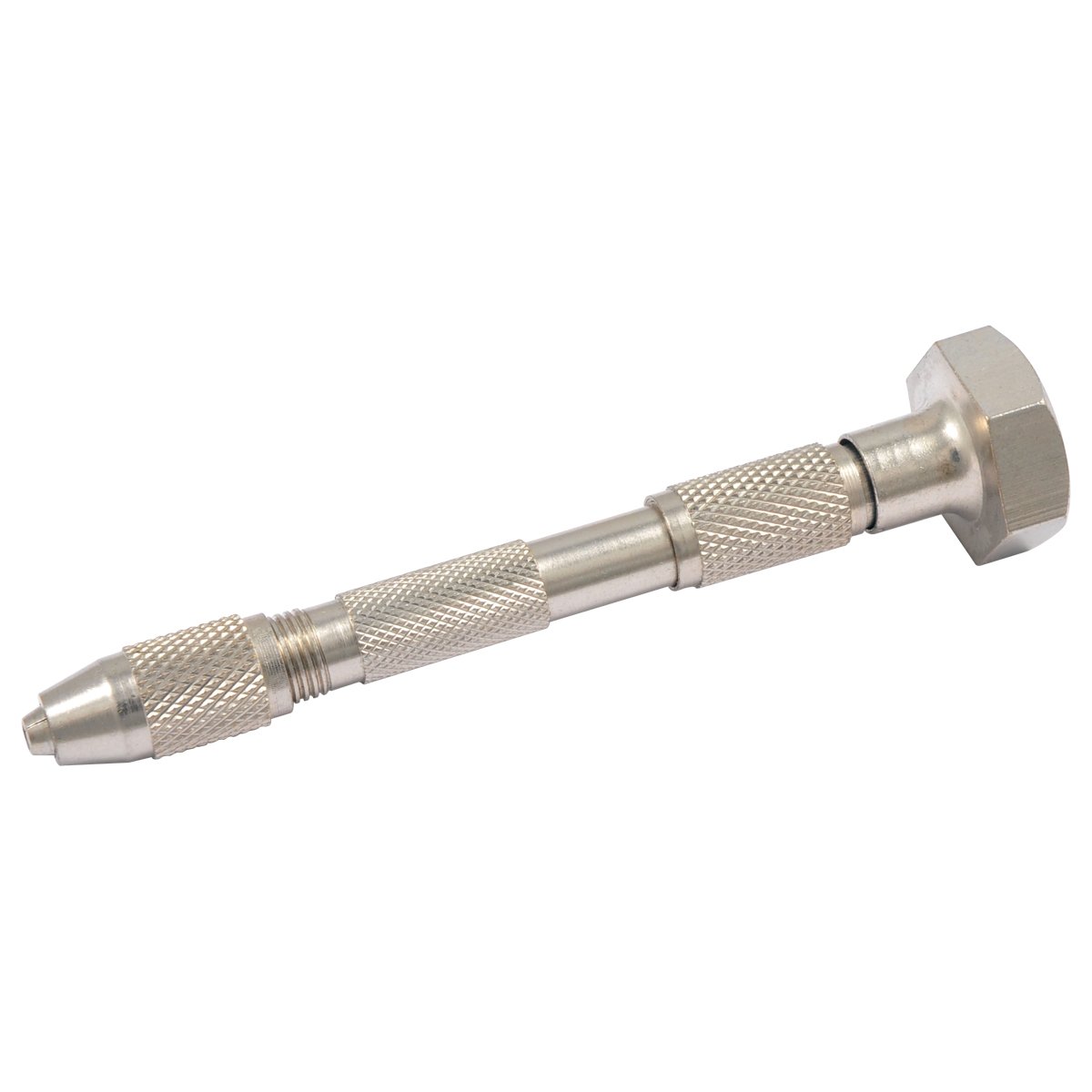 - 3.2mm capacity range makes this tool suitable for fine drilling tasks including jewelry making, model building, electronics, and hobby work. It has a 3-3/4″ overall length. The rotating swivel head enables downward pressure while turning, improving accuracy and reducing hand fatigue. Comes with interchangeable collets to securely hold a variety of small drill bit sizes. Durable & Ergonomic Construction: Nickel-plated body with knurled grip provides enhanced control, durability, and precision handling