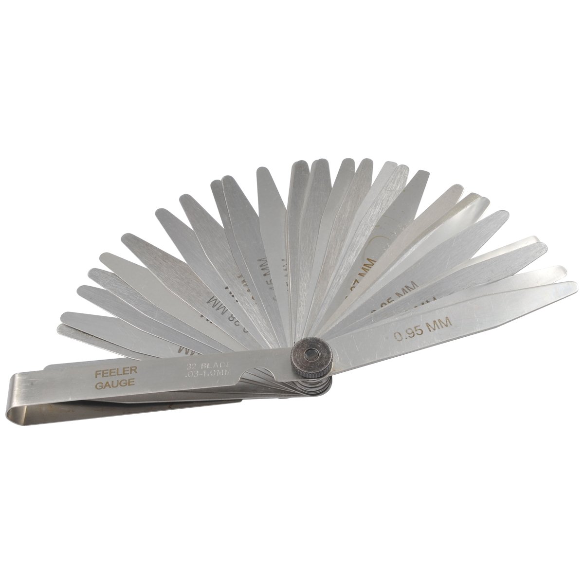 HHIP 32 Piece 0.03-1.00mm Metric Feeler Gage Set Precision Spring Steel Blades – Manufactured from high-quality spring steel for consistent thickness, flexibility, and long-lasting accuracy. Accurate Clearance Measurement – Ideal for checking engine valve lash, spark plug gaps, bearing clearances, and precise mechanical alignments. Clearly Marked Measurements – Each blade is clearly and permanently marked for fast identification during setup and inspection. Durable & Corrosion Resistant – Flexible blades allow easy access to tight spaces while resisting corrosion for long service life in shop environments. A must-have precision tool for automotive, industrial, and mechanical applications. 32 Sizes included: 0.03-0.04-0.05-0.06-0.07-0.08-0.09-0.10-0.12-0.15-0.18-0.20-0.23-0.25-0.28-0.30-0.32-0.35-0.38-0.40-0.45-0.50-0.55-0.60-0.65-0.70-0.75-0.80-0.85-0.90-0.95-1.00mm