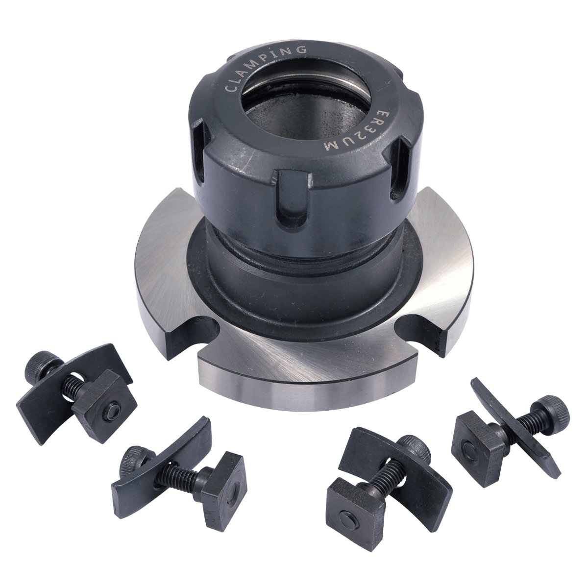 HHIP 80mm Diameter ER-32 Collet Chuck For 3/4″ Rotary Tables ER32 Collet Chuck Adapter – Designed to securely mount ER32 collets to 3/4″ horizontal or vertical rotary tables (3 or 4”) for precision workholding. Versatile Machining Applications – Ideal for gear cutting, indexing, milling, drilling, and repetitive production work requiring consistent clamping accuracy. 80mm Diameter with 4 Mounting Slots – Precision-machined 80mm adapter features four slots for secure bolting directly to the rotary table surface. Complete Mounting Hardware Included – Supplied with mounting bolts for fast installation and reliable operation. High Accuracy & Repeatability – Ensures concentric clamping and stable workpiece positioning when transferring parts between machines.