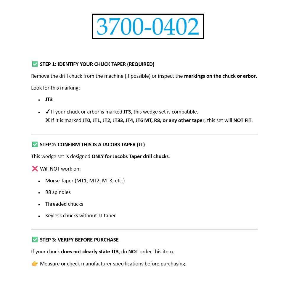 JT3 DRILL CHUCK REMOVAL WEDGE SET (3700-0402) (SKU: 3700-0402)