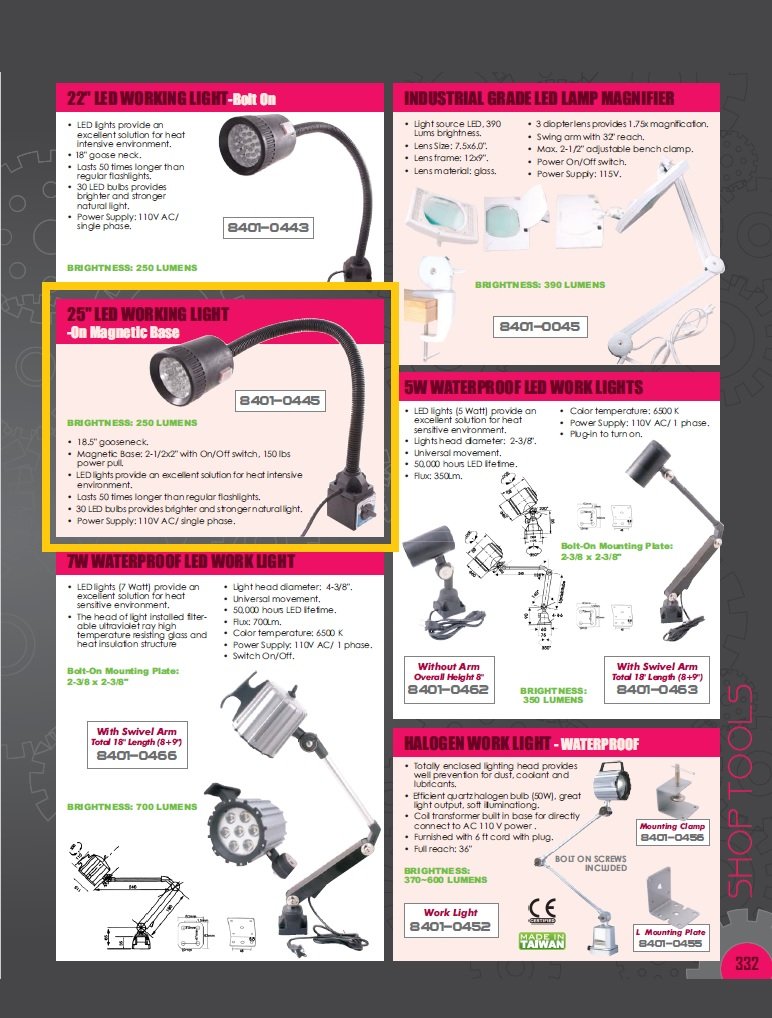 LED GOOSE NECK WORK LIGHT ON MAG BASE WITH 18 1/2 FLEXIBLE SHAFT (SKU: 8401-0445)