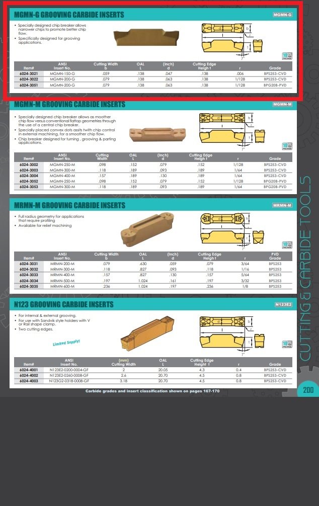 - MGMN-200-G Grade BPG20B-PVD Cut-Off & Grooving Insert
