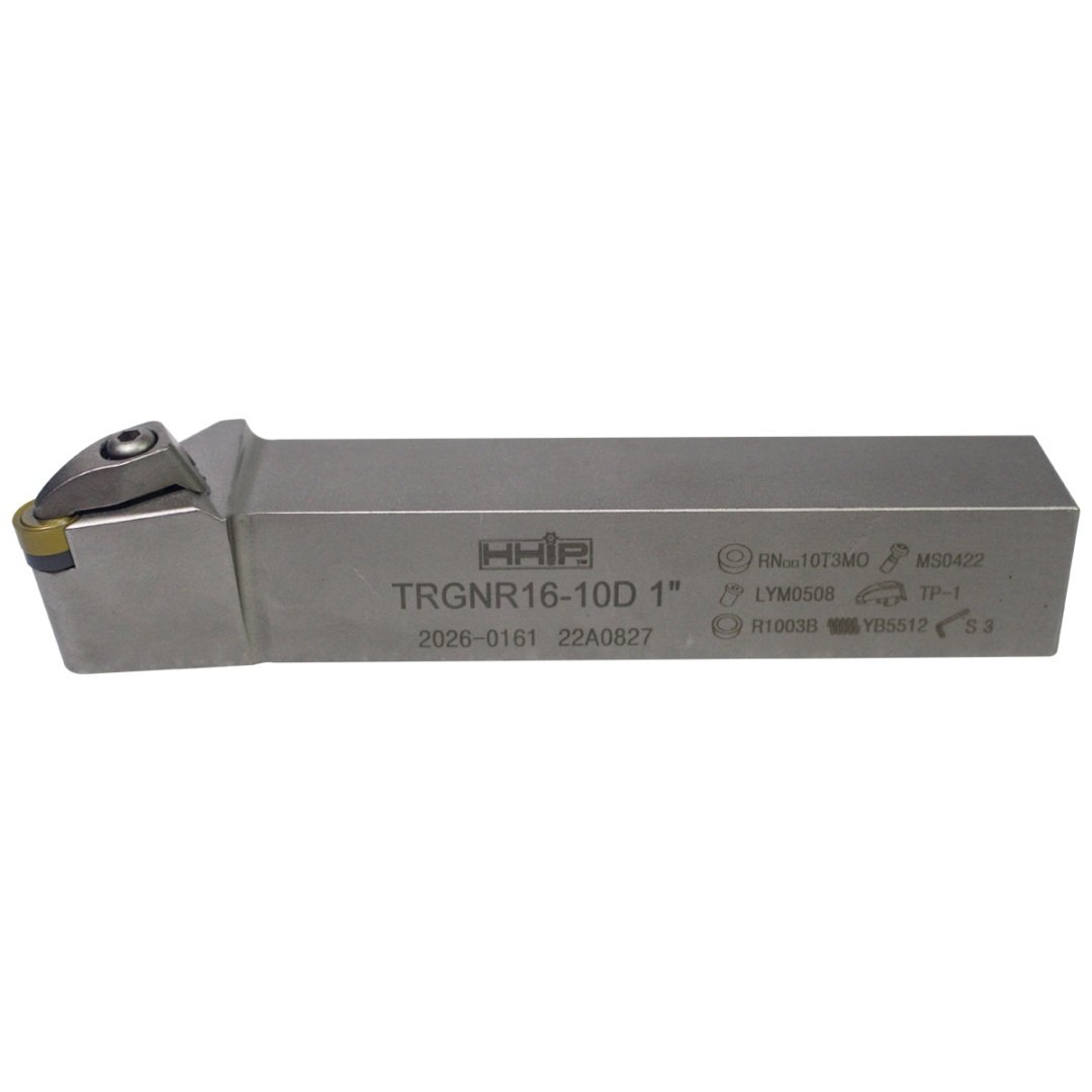 HHIP 2026-0161 – MRGNR 16-10D Turning Tool Holder – New Rigid Clamp Design Right hand. 0 Degree lead angle for turning to square shoulders. Zero degree relief. New rigid style top & hole clamping design provides increased stability & security for productive turning of large components and heavy machining. Use with RN-1204MO #6005-5204 inserts. Shim is #2100-1204