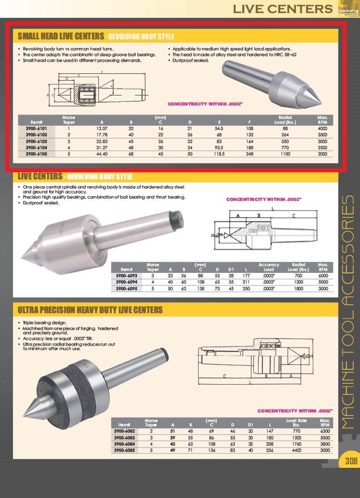 MT2 LIVE CENTER WITH REVOLVING BODY (3900-6102) (SKU: 3900-6102)