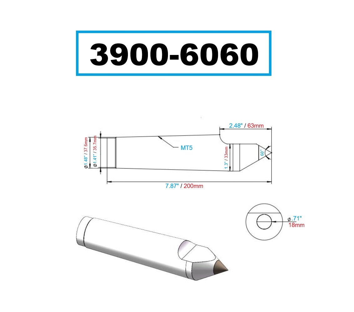 MT5 CARBIDE TIPPED HALF-NOTCHED DEAD CENTER (3900-6060) (SKU: 3900-6060)
