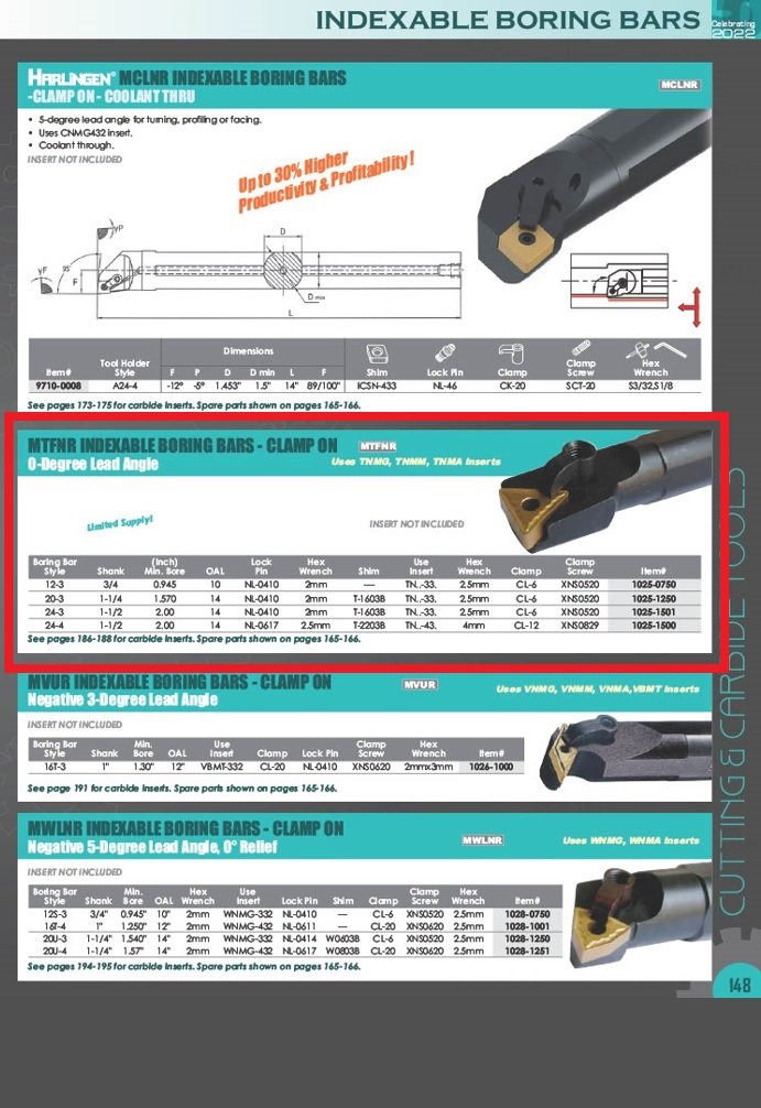 MTFNR 12-3 INDEXABLE BORING BAR..limited supply.. (SKU: 1025-0750)