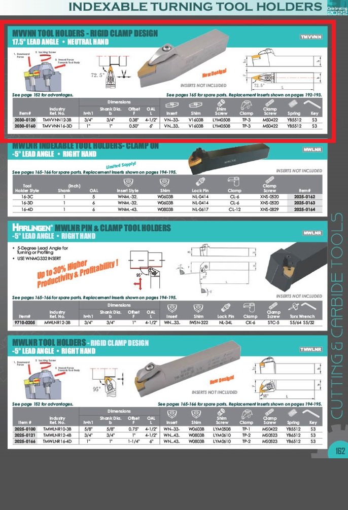 MVVNN 16-3D TURNING TOOL HOLDER – NEW RIGID CLAMP DESIGN (2030-0160)