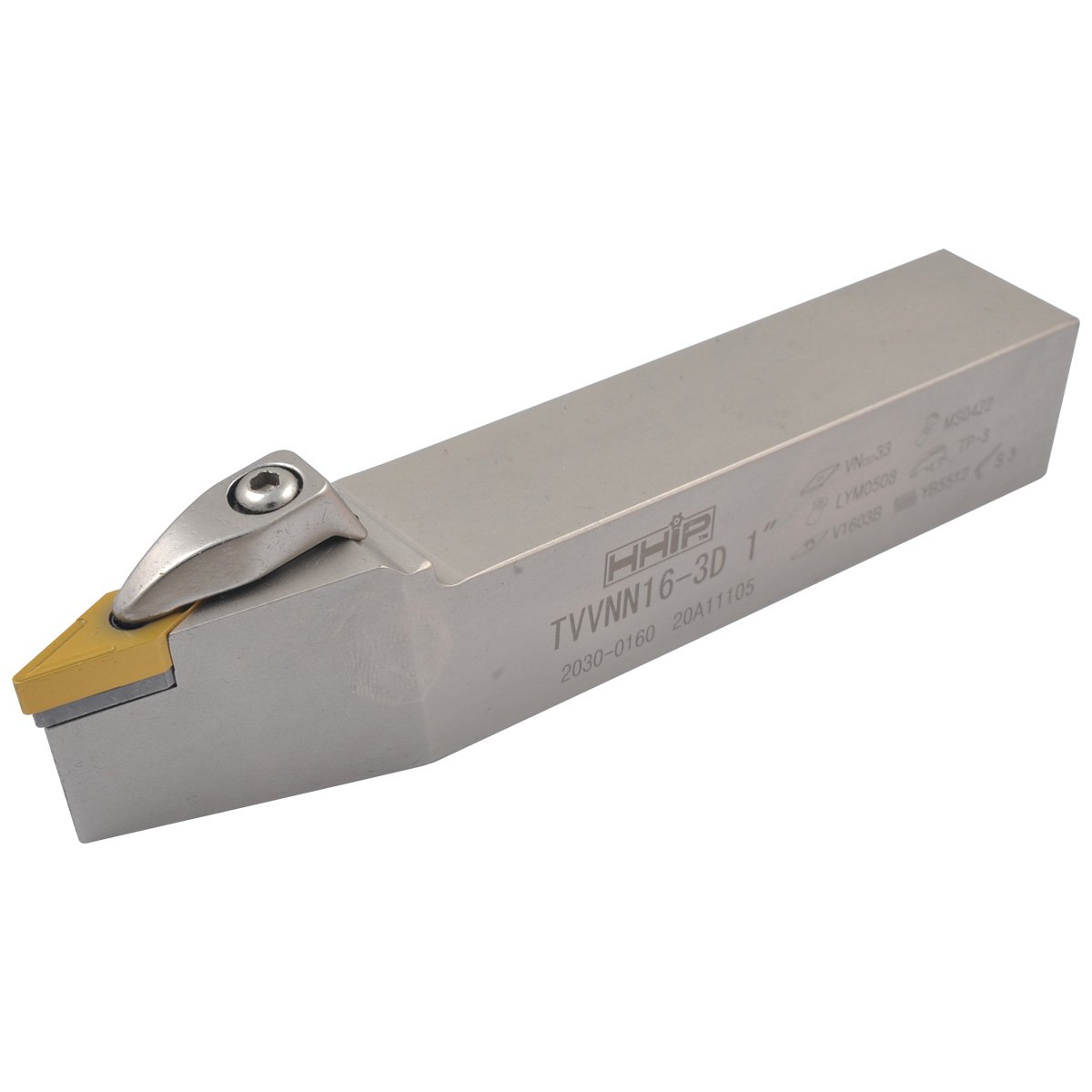 HHIP MVVNN 16-3D Turning Tool Holder – New Rigid Clamp Design 17.5 Degree lead angle. Right hand. Zero degree relief. Use with VNMA or VNMG inserts. New rigid style top & hole clamping design provides increased stability & security for productive turning of large components and heavy machining. Shim is #2100-1602. Shim screw is #2100-4300. Clamp is #2100-2903. Clamp screw is #2100-4350. Spring is #2100-4384. When replacing the insert, apply enough pressure to push the clamp forward and align it with the hole as you tighten it. Please see the video of the installation process.