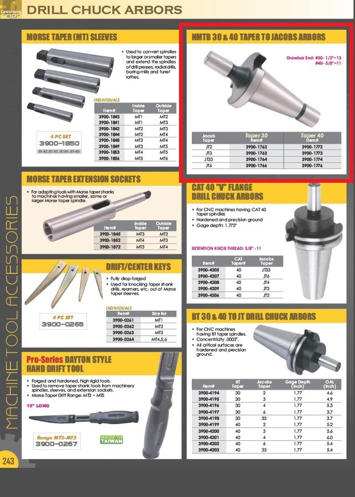 - NMTB #30 Taper to Jacobs JT2 Arbor