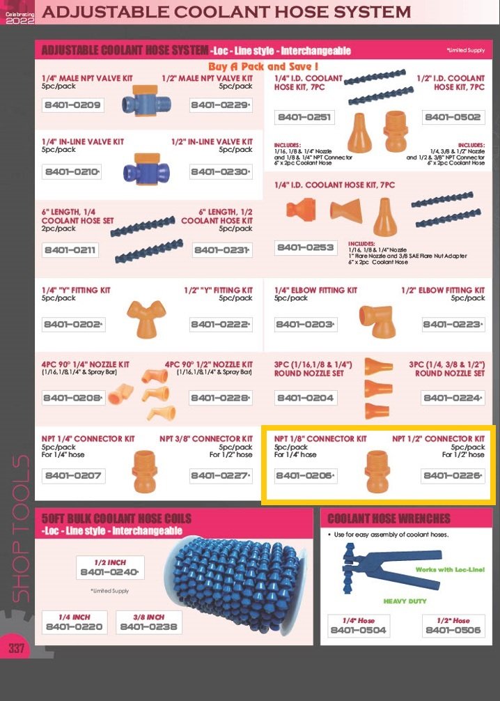 - 1/8″ NPT Connectors for 1/4″ Coolant Hoses