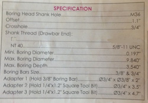 - Set comes complete with boring head, boring shank, boring bars, adapters and L-shape hex wrenches