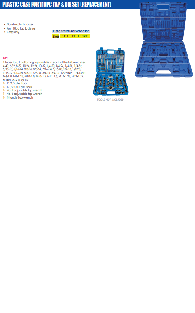 PLASTIC CASE FOR 110 PIECE CARBON STEEL TAP & DIE SET (SKU: 1011-0111CASE)