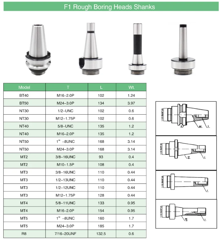 High Quality Boring Head with different Shank options. Please see all specification and sizes not hetsite contact with support for any questions.