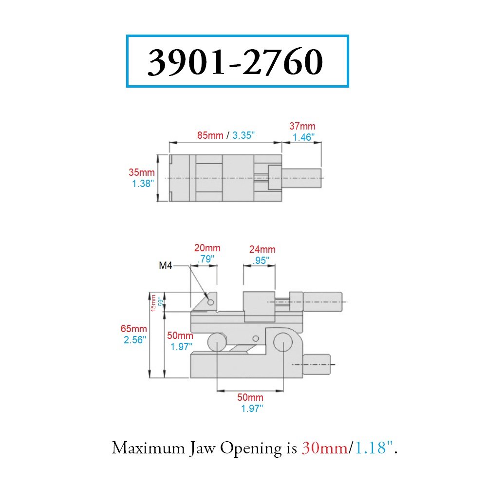 • Screw rod design allows you to easily tighten the jaws on small workpieces