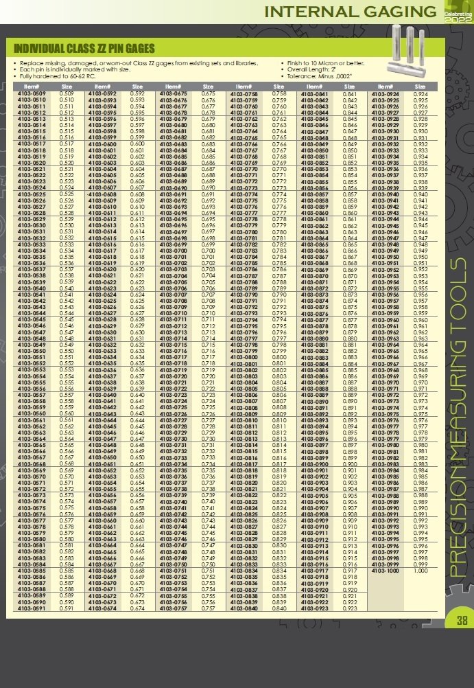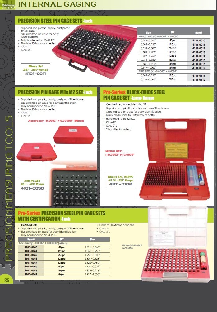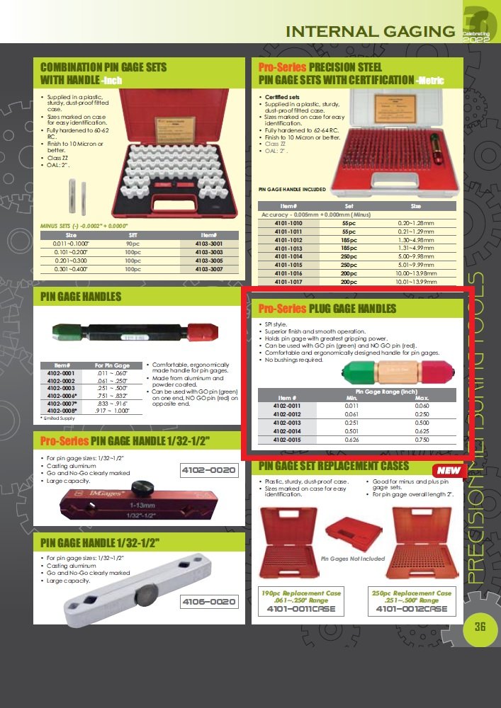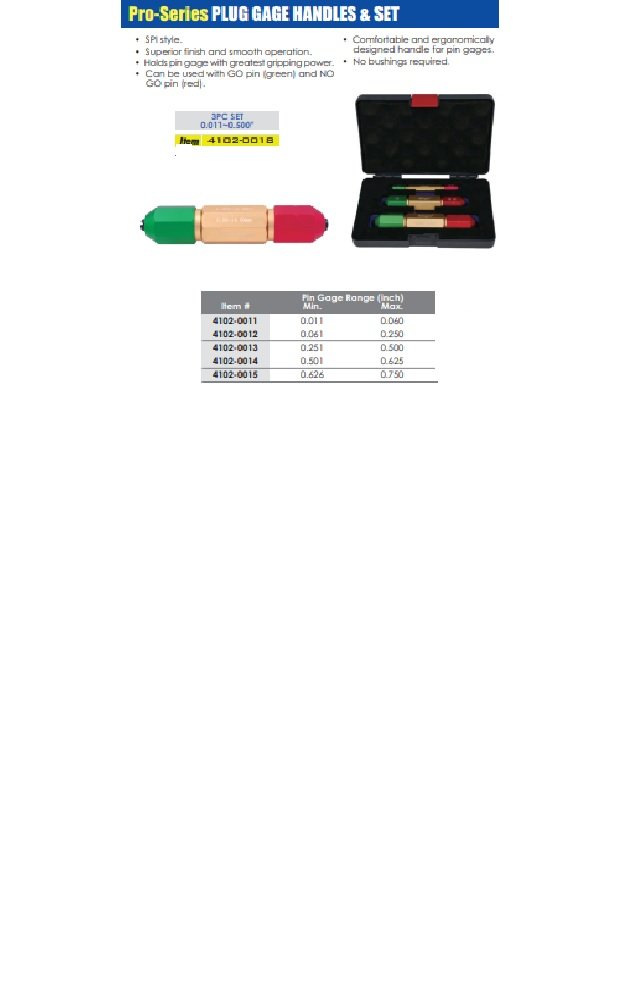 - Handles are clearly marked with the appropriate pin gage sizes.