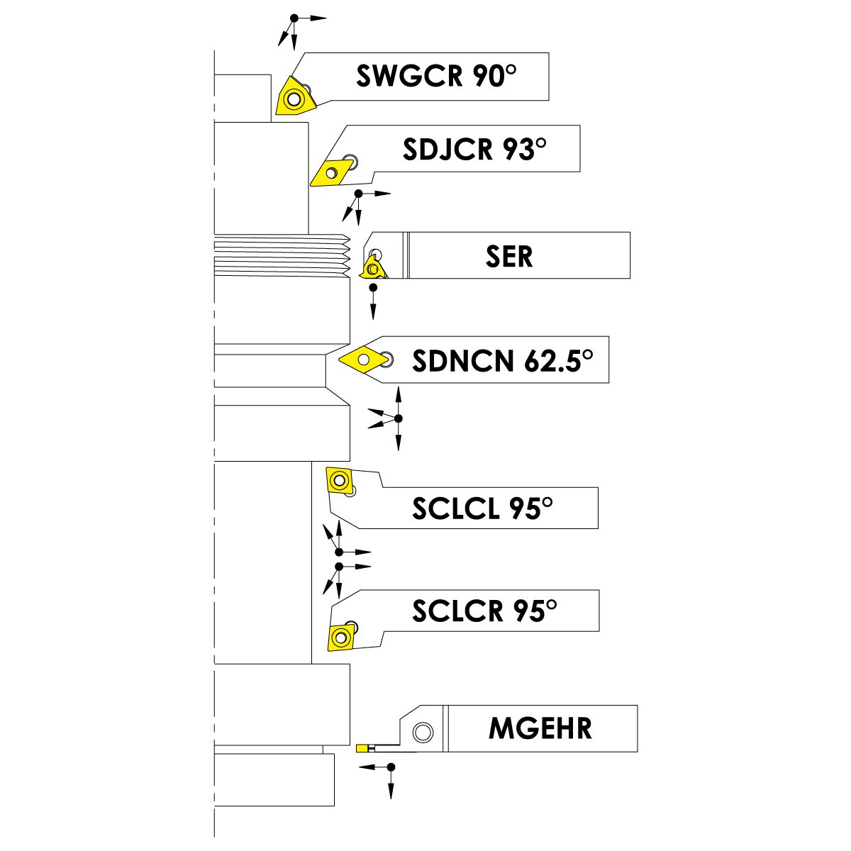 • Set includes turning holders, inserts & torx wrenches