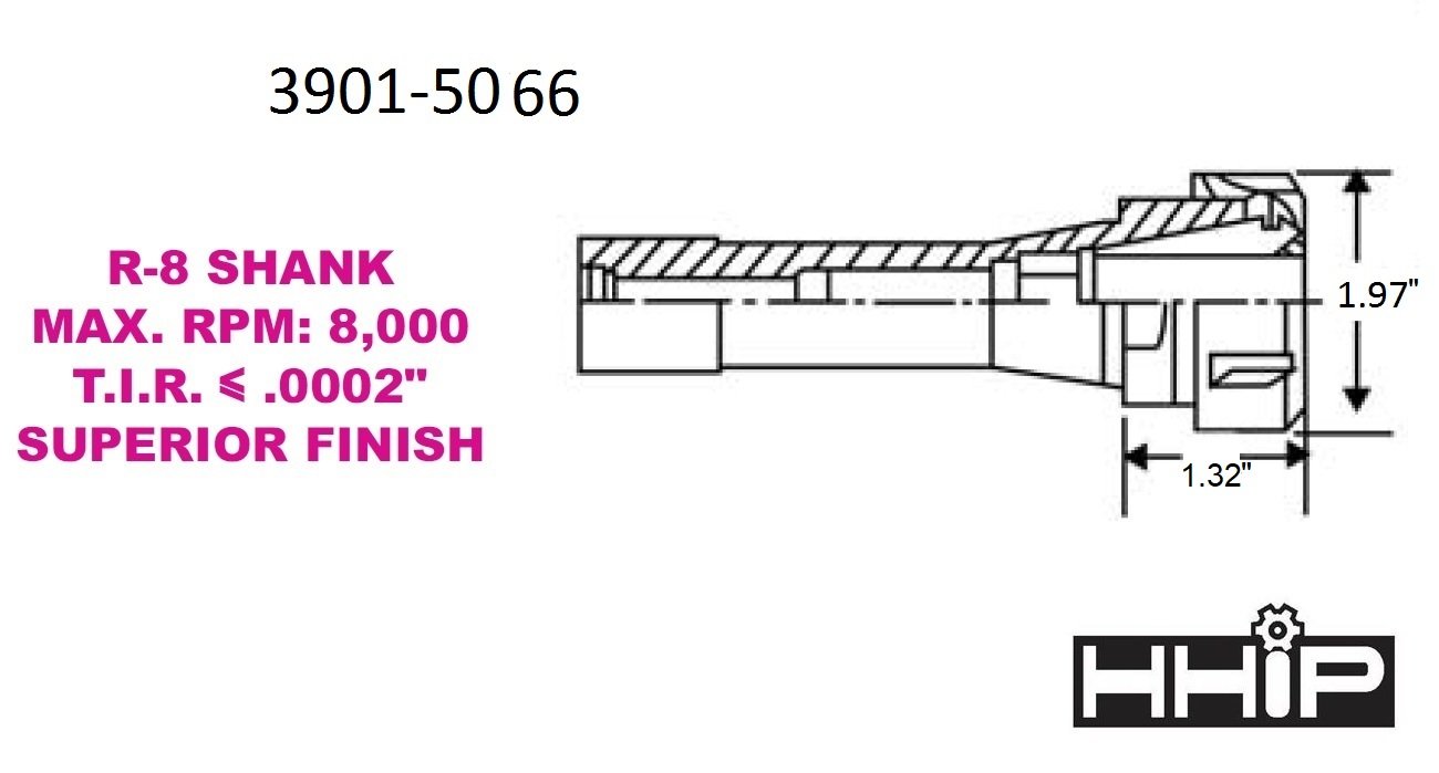 PRO-SERIES R8 ER-32 DRAWBAR END COLLET CHUCK WITH SPANNER NUT (3901-5066). Key features: Pro-Series by HHIP R8 ER-32 Collect Chuck with Drawbar End & Spanner Nut; T.I.R. <= .0002".