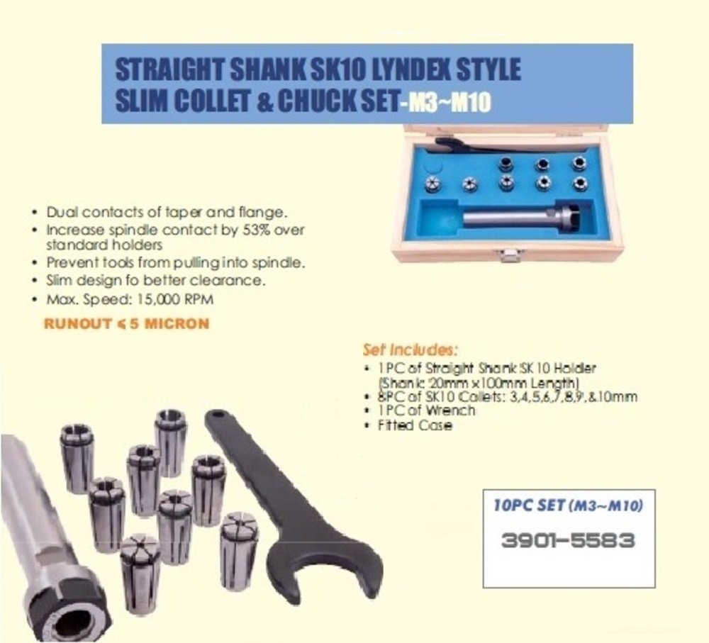 - Pro-Series 10 Piece SK10 Lyndex Style Straight Shank Collet Chuck Set