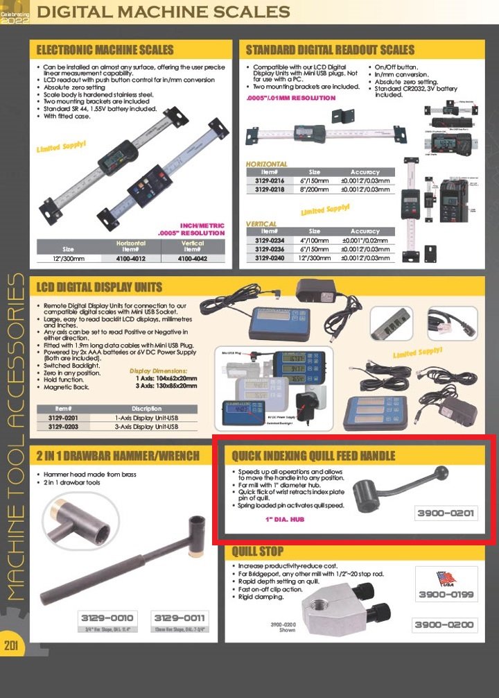 QUICK INDEXING QUILL FEED HANDLE FOR MILLS (3900-0201). Key features: Quick Indexing Quill Feed Handle for Mills; Speeds up all operations and allows you to move the handle into any position..