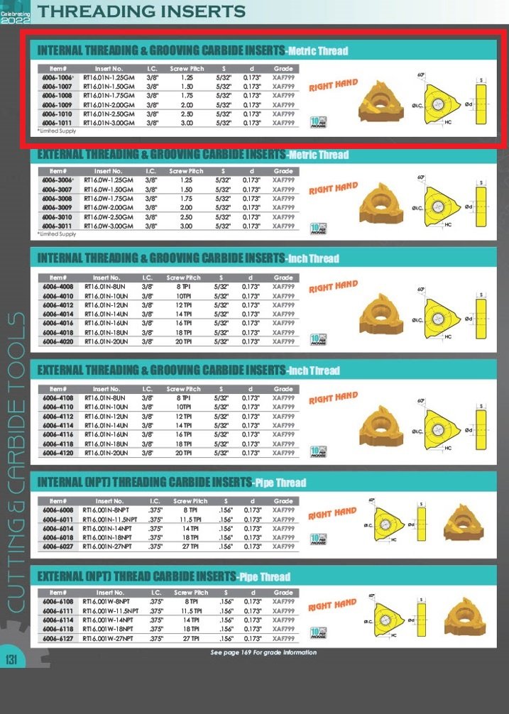 RT16.01N-1.50GM RIGHT HAND INTERNAL THREADING & GROOVING INSERT (6006-1007) (SKU: 6006-1007)